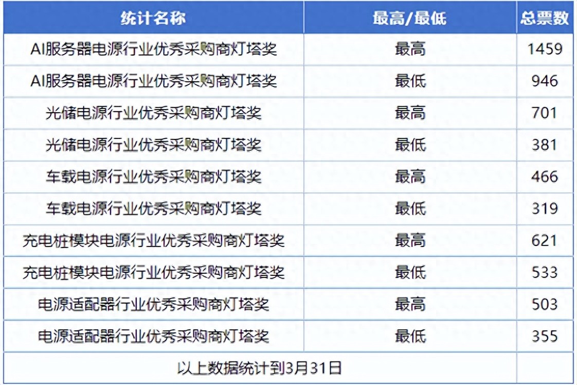 01战况胶着!灯塔奖电源行业评选各奖项投票排名首尾紧咬