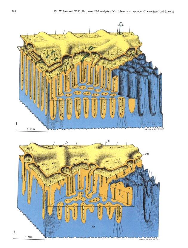 [1] Willenz, P., Hartman, W.D. Micromorphology and ultrastructure of Caribbean sclerosponges. Mar. Biol. 103, 387–401 (1989). https://doi.org/10.1007/BF00397274