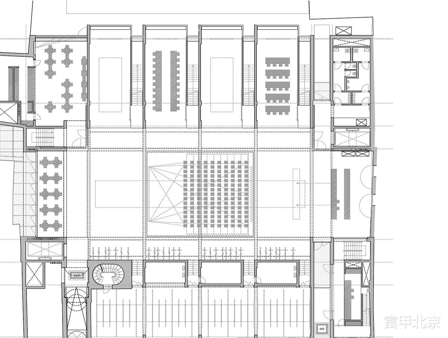 内部的沟通和空间布局尊重历史上的调制与处理方式,同时兼顾当代学校和城市的需求,优化了外部空间的关系。