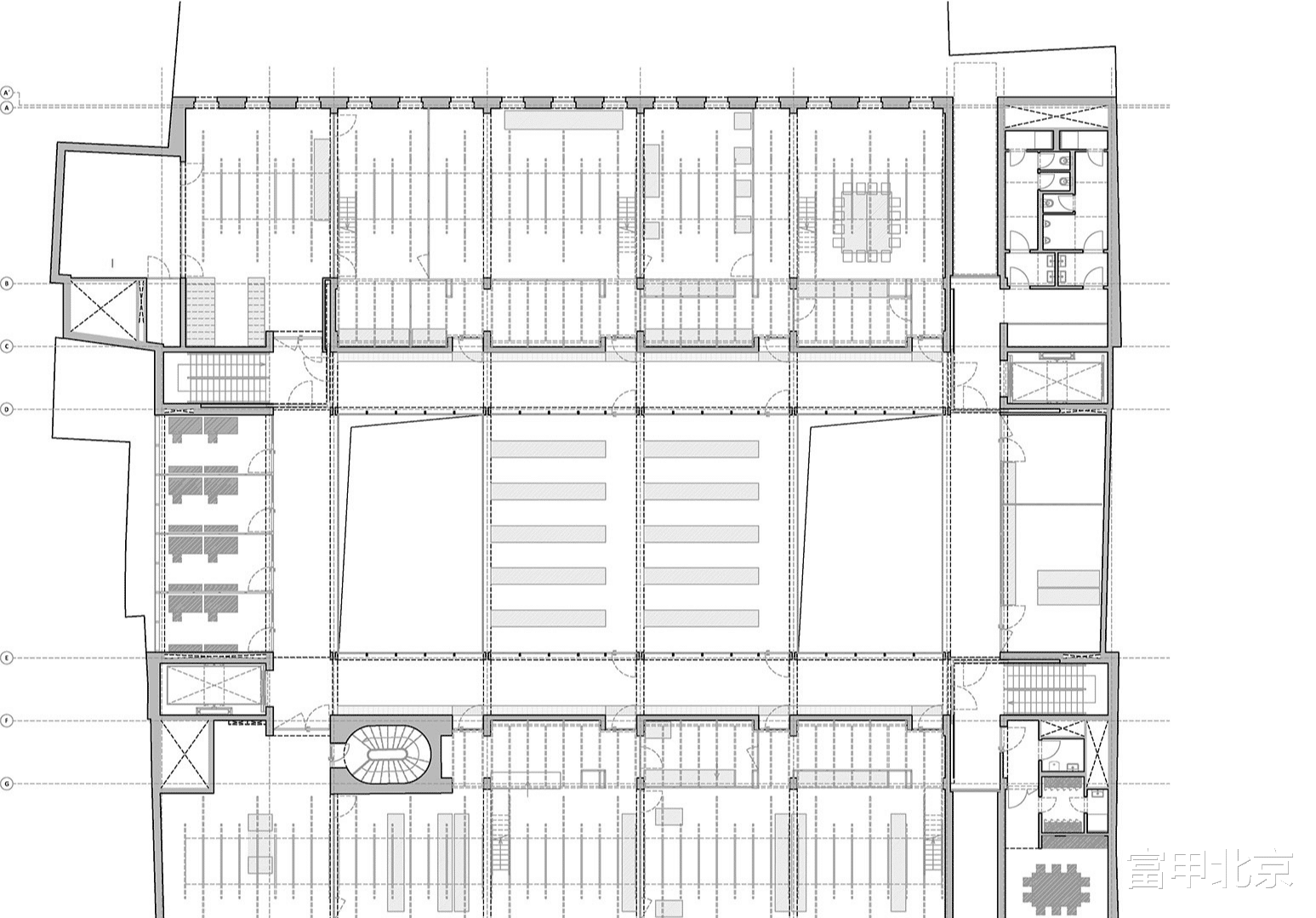 内部设计中,一处绿意盎然的庭院营造出宜人的氛围,并与周围建筑形成良好连接。工作室、技术设施与艺术工作坊的整合充分利用了建筑空间,使所有公共区域、大堂和流通空间焕发活力。即使是走廊,也能作为学生展览的空间,发挥其双重功能。内部空间布局、通道和流通系统既尊重历史体系,又在功能性与美观性上达到了平衡。