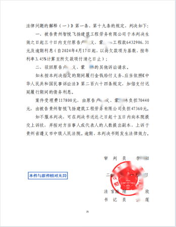 更让蒙先生绝望的是,诉讼期间,贵州路桥与飞扬劳务还私下“抹平”了双方的账目。“此前审理中明确提到,贵州路桥还拖欠飞扬劳务200多万元工程款,可后来他们私下做了账目调整,把这笔欠款直接抵消了。现在贵州路桥说不欠飞扬劳务的钱,飞扬劳务又没钱支付给我,这分明是两家公司提前串通好的套路,就是要把我逼到绝路!”