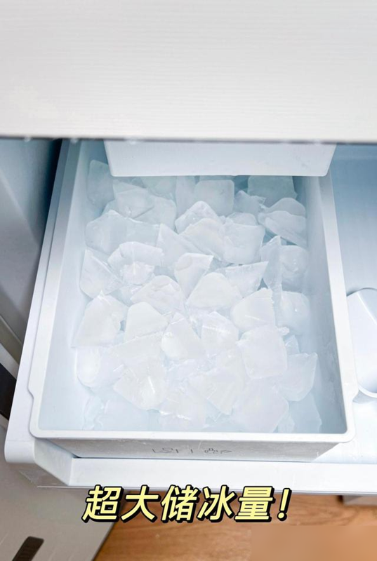 但冷布丁的自动制冰机直接让我“躺赢”:60分钟出冰,储冰盒能囤110颗,抗菌制冰盘还能自清洁。