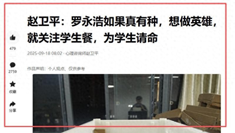 赵卫平泼冷水:“盯西贝不算勇,真本事看学生餐”就在全网为罗永浩点赞时,赵卫平站出来唱反调:“罗永浩选的战场,根本没碰真正的弱势群体!”