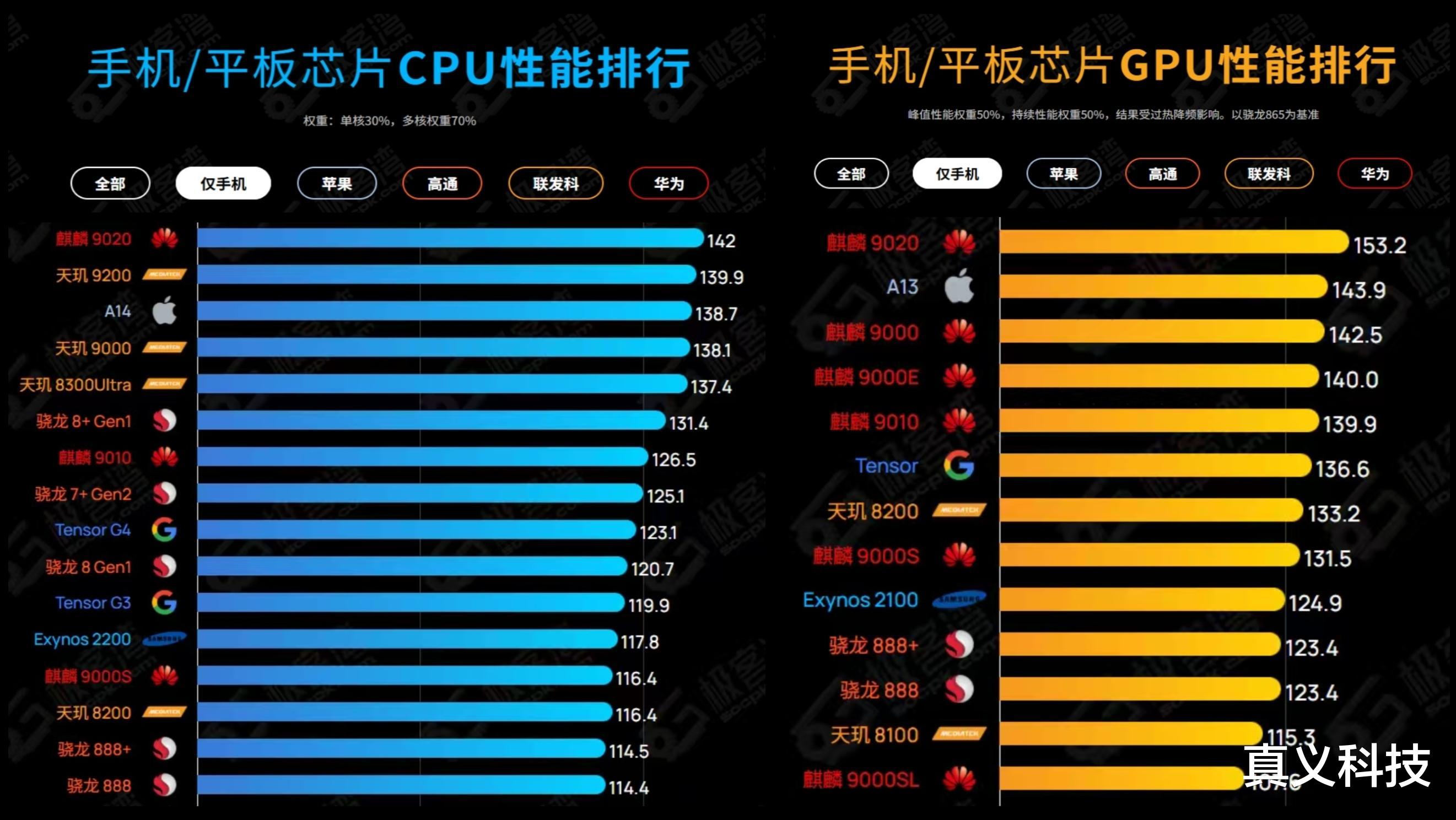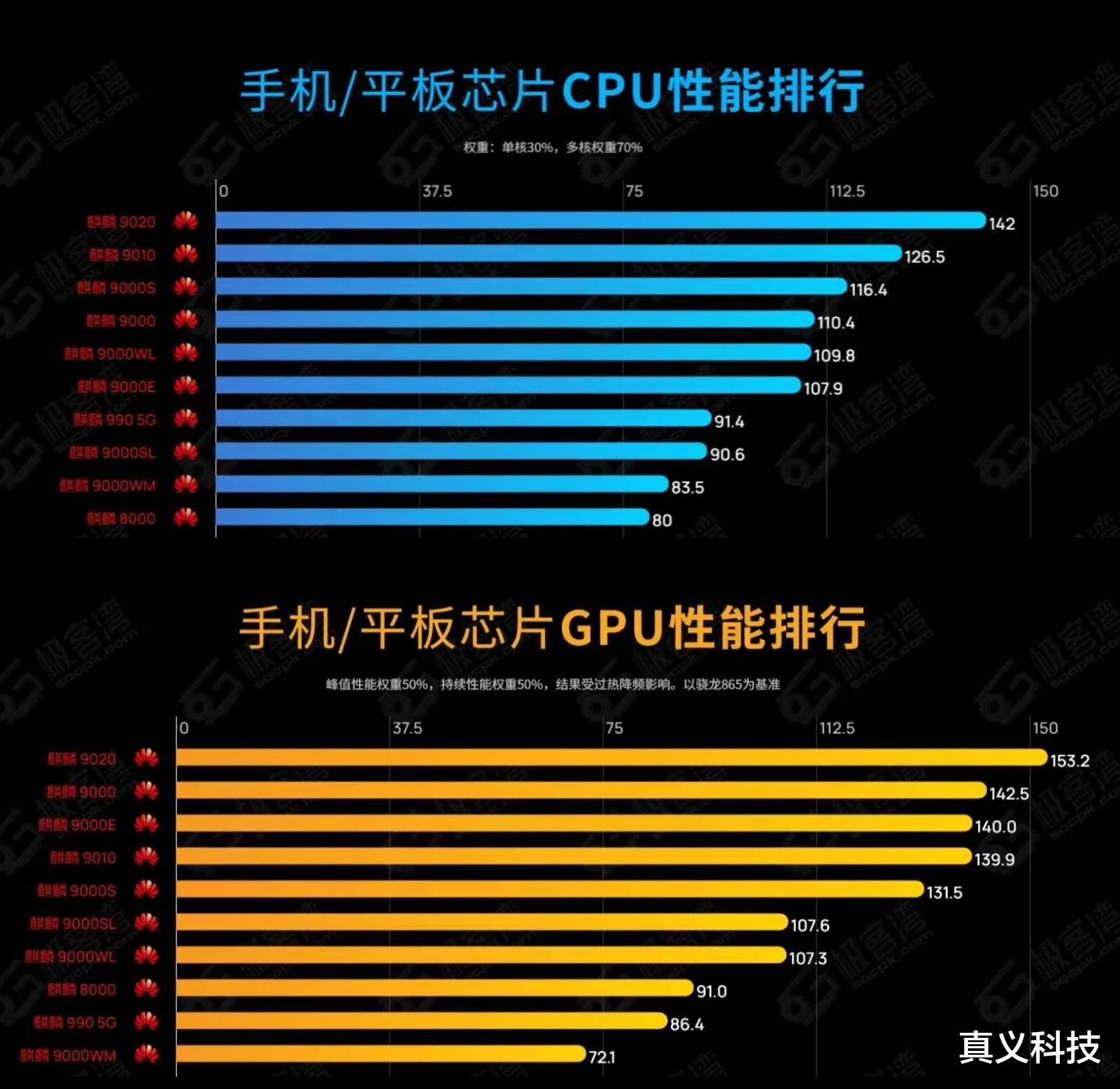 8,麒麟9020B:在麒麟9020A的CPU基础上分别阉割了一颗大核与一颗小核——多核性能仅超越骁龙888,至于GPU具体是阉割为1簇还是2簇马良920尚无定论——但性能肯定低于骁龙865。