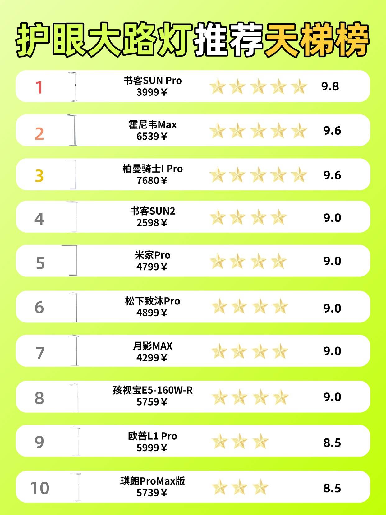 二、护眼大路灯排名前十的品牌有哪些?揭秘落地护眼大路灯的十大品牌