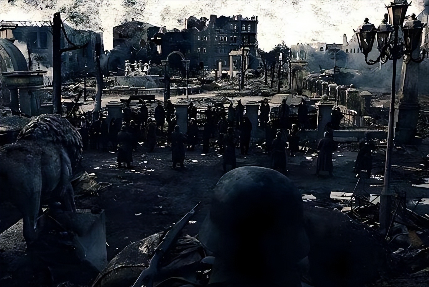 德军初入市区即集中火力夺取火车站,炮弹如雨点般倾泻在铁轨与候车室之间,浓烟滚滚中,黑色蒸汽机车成了断裂的废铁,而钢轨则像被拧断的肋骨横陈地面。
