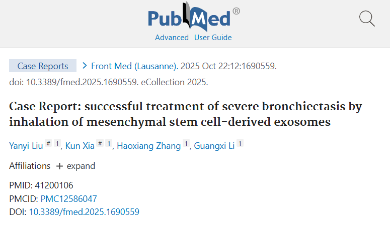 真实案例见证外泌体的神奇“魔力”2025年10月,中国中医科学院广安门医院在《Frontiers in Medicine》上发表了一则令人振奋的案例报告。一名53岁的严重支气管扩张患者,在接受了间充质干细胞外泌体雾化应用后,咳嗽、咳痰的症状得到了明显改善,还成功摆脱了辅助供氧设备,血氧饱和度稳定在97%,胸部CT显示肺部空洞缩小。这就像给患者原本灰暗的生活带来了一束光,让他重新看到了健康的希望。