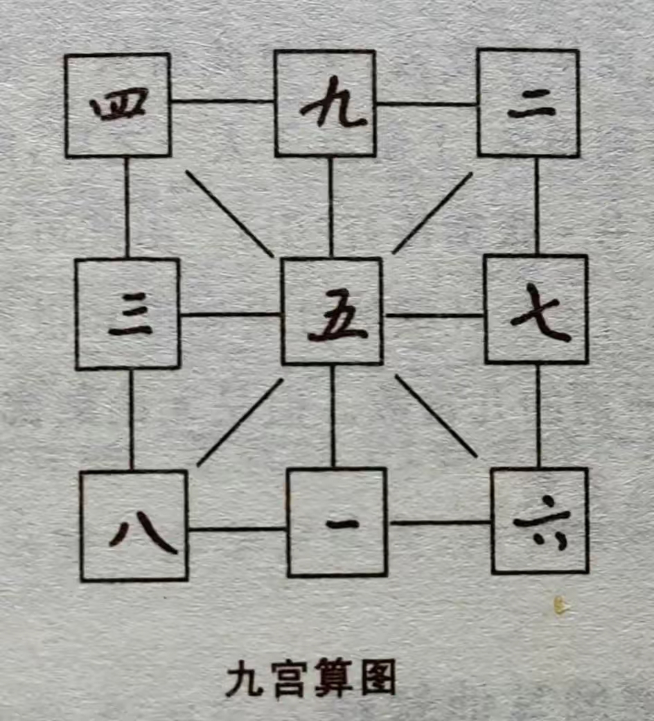 明堂九室图∶太一行九宫图(洛书九宫数)