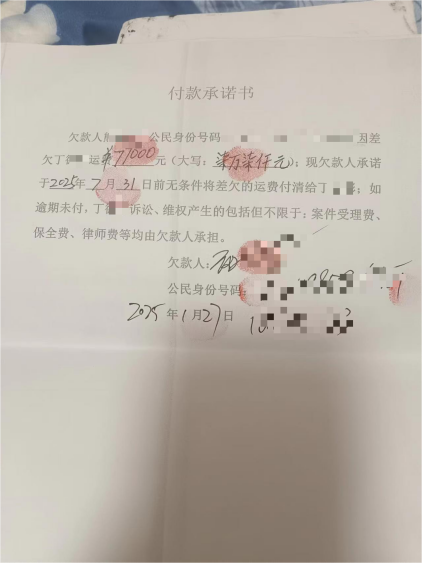 2025年3月,丁德彬就此提起诉讼,法院于4月组织调解,双方达成协议:熊武军、谭艺娟需分两期支付15.7万元运费。一年半血汗换来的十五万七运费,终究成了纸上的数字。熊武军虽然写了承诺书,但是法院调解好的还款计划也成了空谈。他跑断腿催债,只换来一次次敷衍,那每一分运费里,都浸透着他的汗水和辛酸,如今却成了要不回的奢望。
