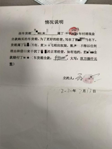 (挂车使用权情况说明,丁德彬提供)