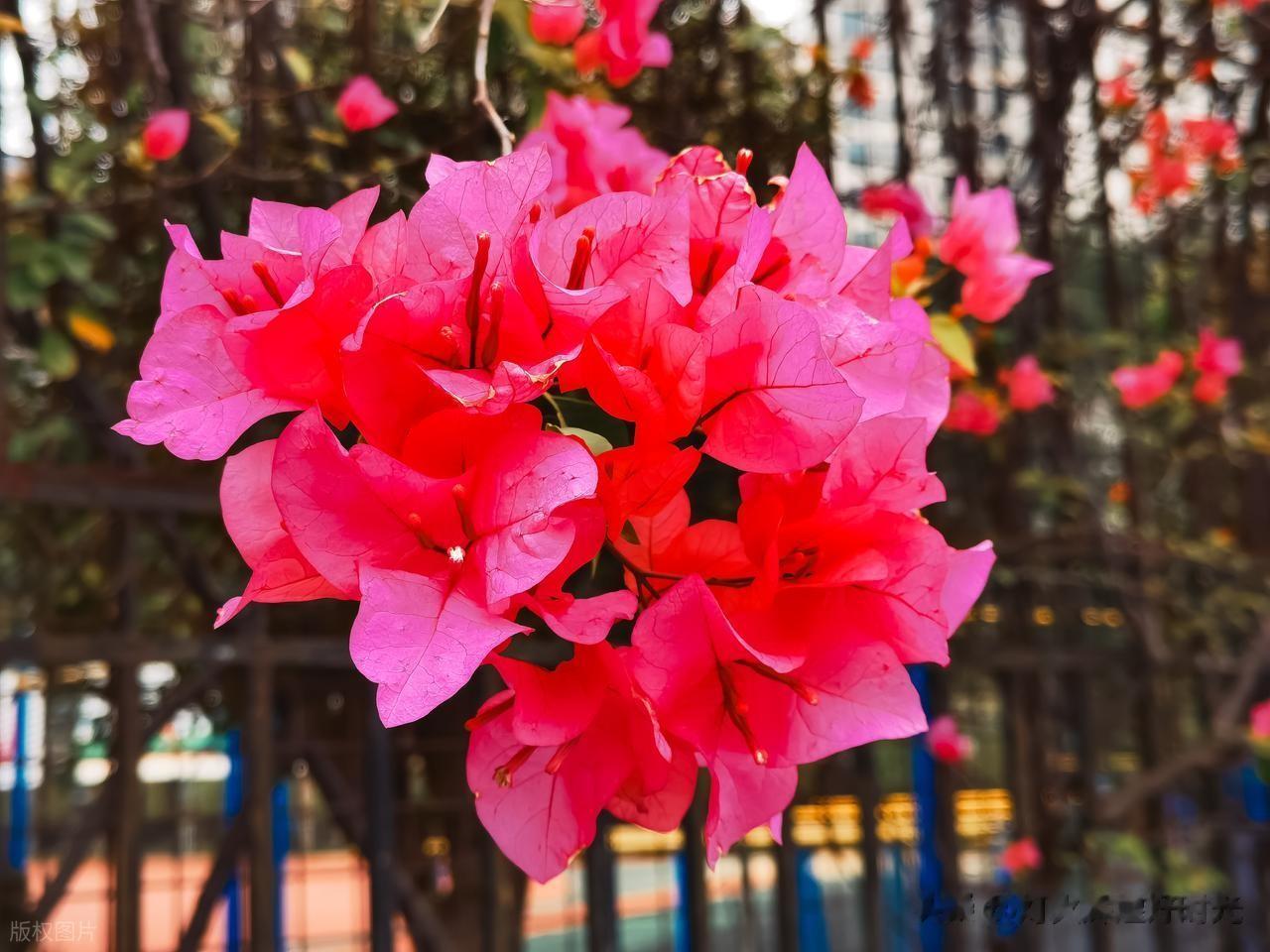我向来知晓,三角梅的色彩丰富多样,有朱红的热烈奔放,大红的明艳夺目,粉色的温柔婉约,紫色的神秘优雅,还有那如西瓜瓤般清甜的西瓜红等等。