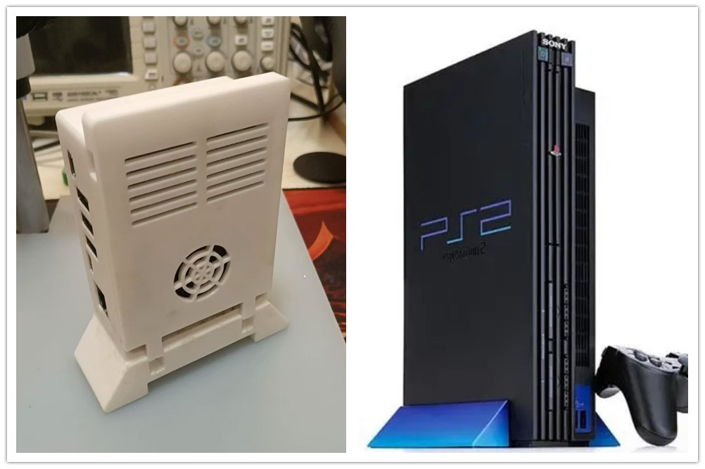 我第一眼看到这玩意的时候,就立刻想到了立起来的PS2厚机,你说像不像就完事了。其实改装者应该给它喷个漆的,甚至干脆效仿PS2造型,喷成黑色再贴个PS2的贴纸,再直接跑PS2模拟器玩游戏,姨夫看到都得哭。