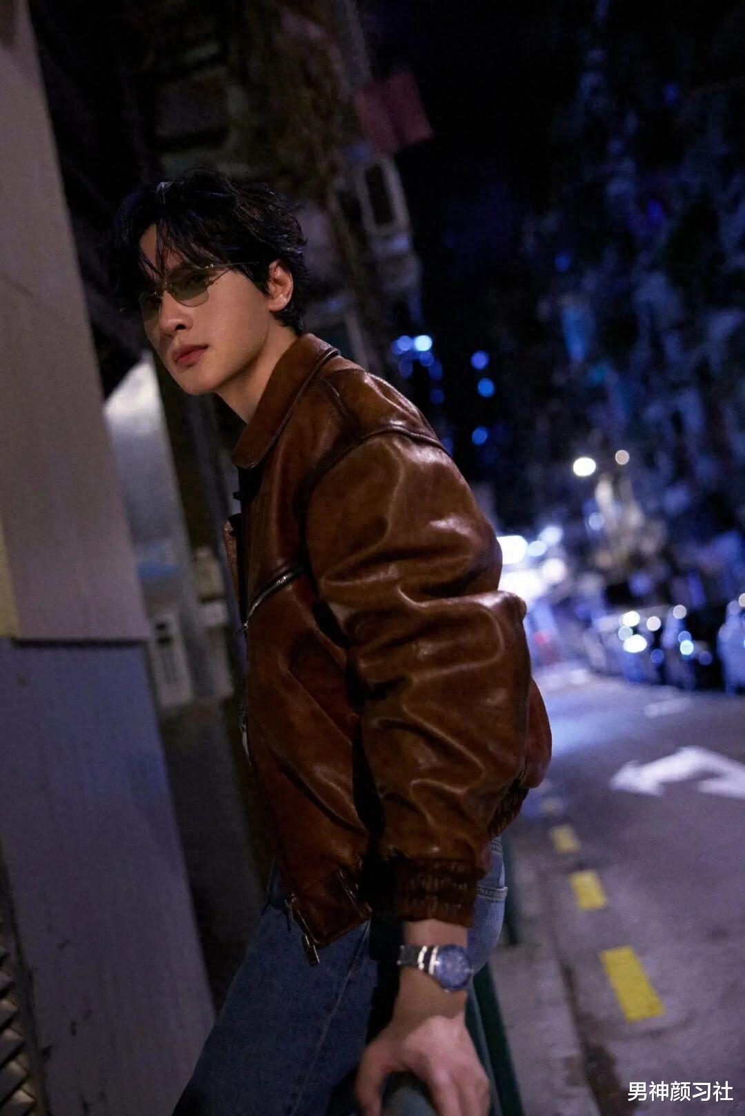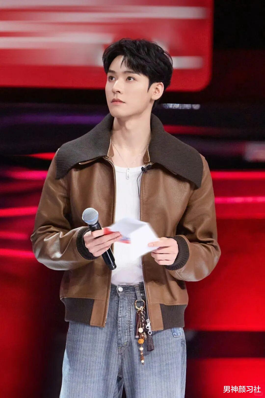 龚俊用拼接款棕色皮衣造型,可谓细节满分。他内搭白T,外层皮衣拼接设计充满玩趣,腰间一串钥匙链成为点睛之笔。不张扬,却暗藏心思。