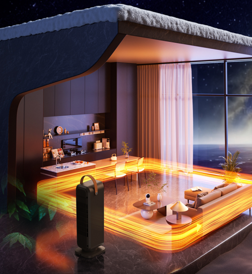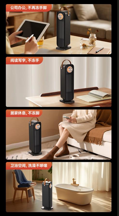 用户可通过6档风速调节、触控与遥控双操作,以及30/60/90分钟定时功能,自由掌控室温,实现全场景灵活取暖。