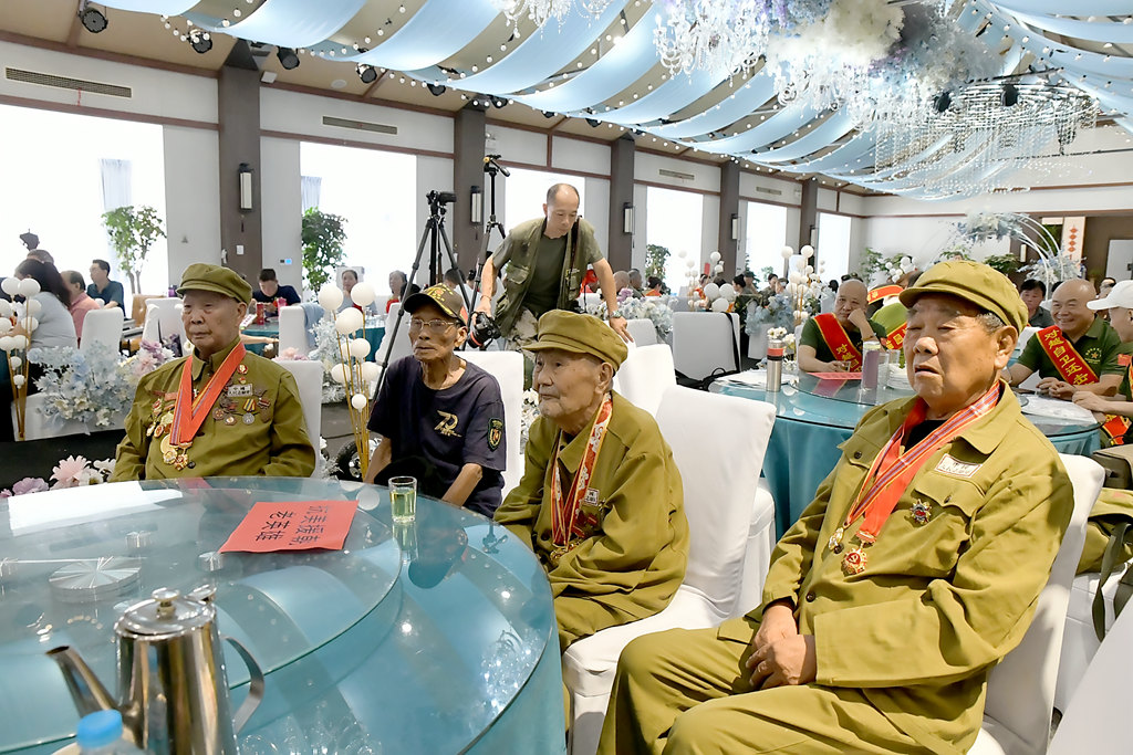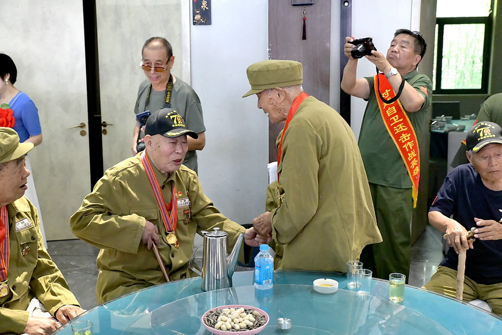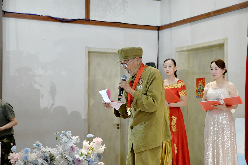 有请志愿军老英雄上场,祝愿志愿军老英雄健康长寿。