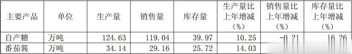 中粮糖业是国内食糖与番茄制品行业的龙头企业,核心产品为自产糖与番茄酱。根据2024年年报数据,公司核心产品产量实现双位数增长:自产糖产量达124.63万吨,同比提升10.25%;番茄酱产量为34.14万吨,同比增长14.03%。