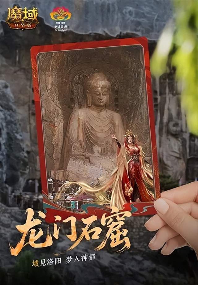 《魔域口袋版》与洛阳文旅的联动,利用3D建模技术对世界文化遗产、隋唐洛阳城重要标志——定鼎门以及龙门石窟的局部景观进行了高精度还原。