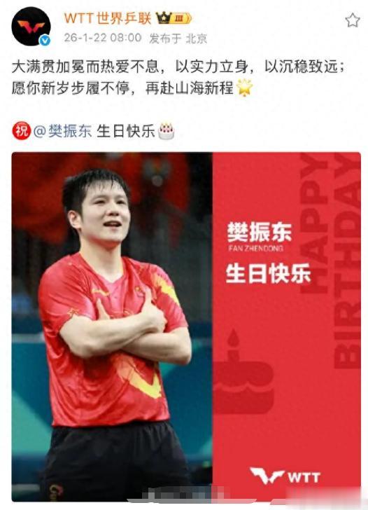 这次生日也是非常豪横,他已经退出世界排名了WTT官方还是为他送上了祝福,老恩师吴敬平也是在第一时间为这位爱徒送上祝福。