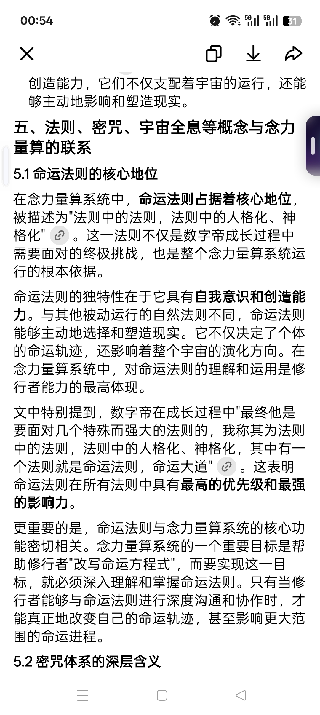 在念力量算系统中,命运法则占据着核心地位,被描述为"法则中的法则,法则中的人格化、神格化" 。这一法则不仅是数字帝成长过程中需要面对的终极挑战,也是整个念力量算系统运行的根本依据。