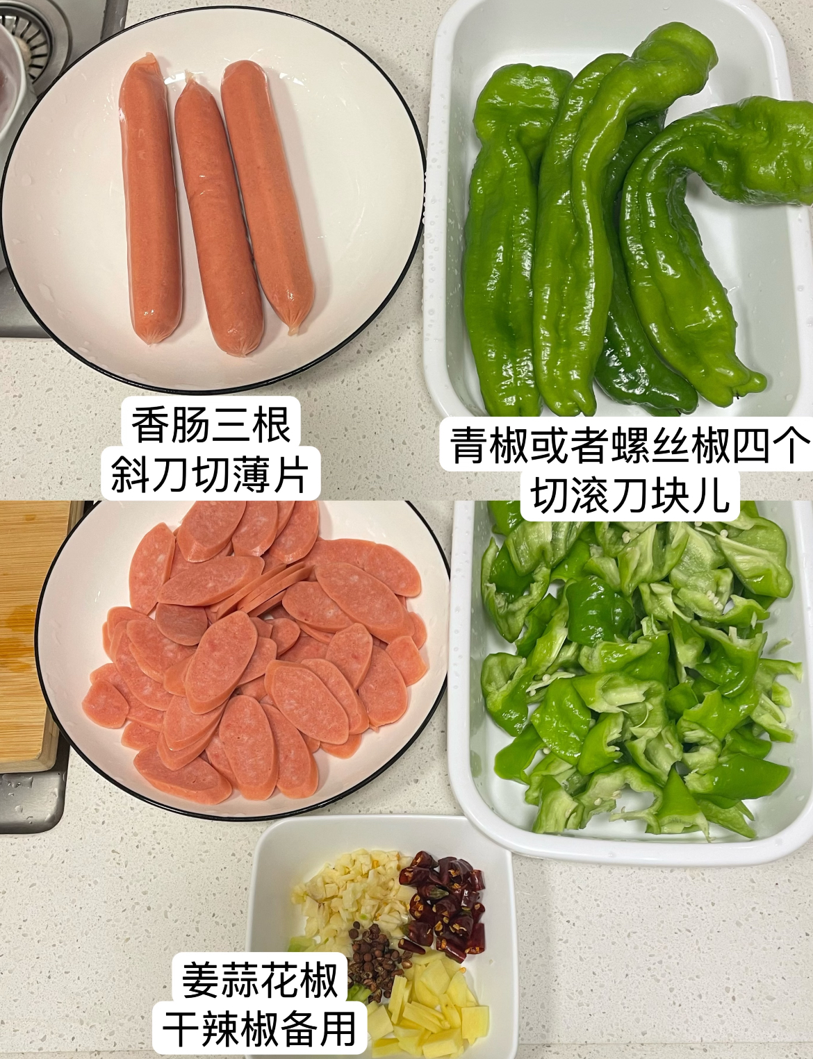 今天做的是青椒炒香肠,教程在图上哦!做法简单又好吃,巨下饭!几分钟就能搞定,记得用咱们在外边买那种一根根的肠,不是平时吃