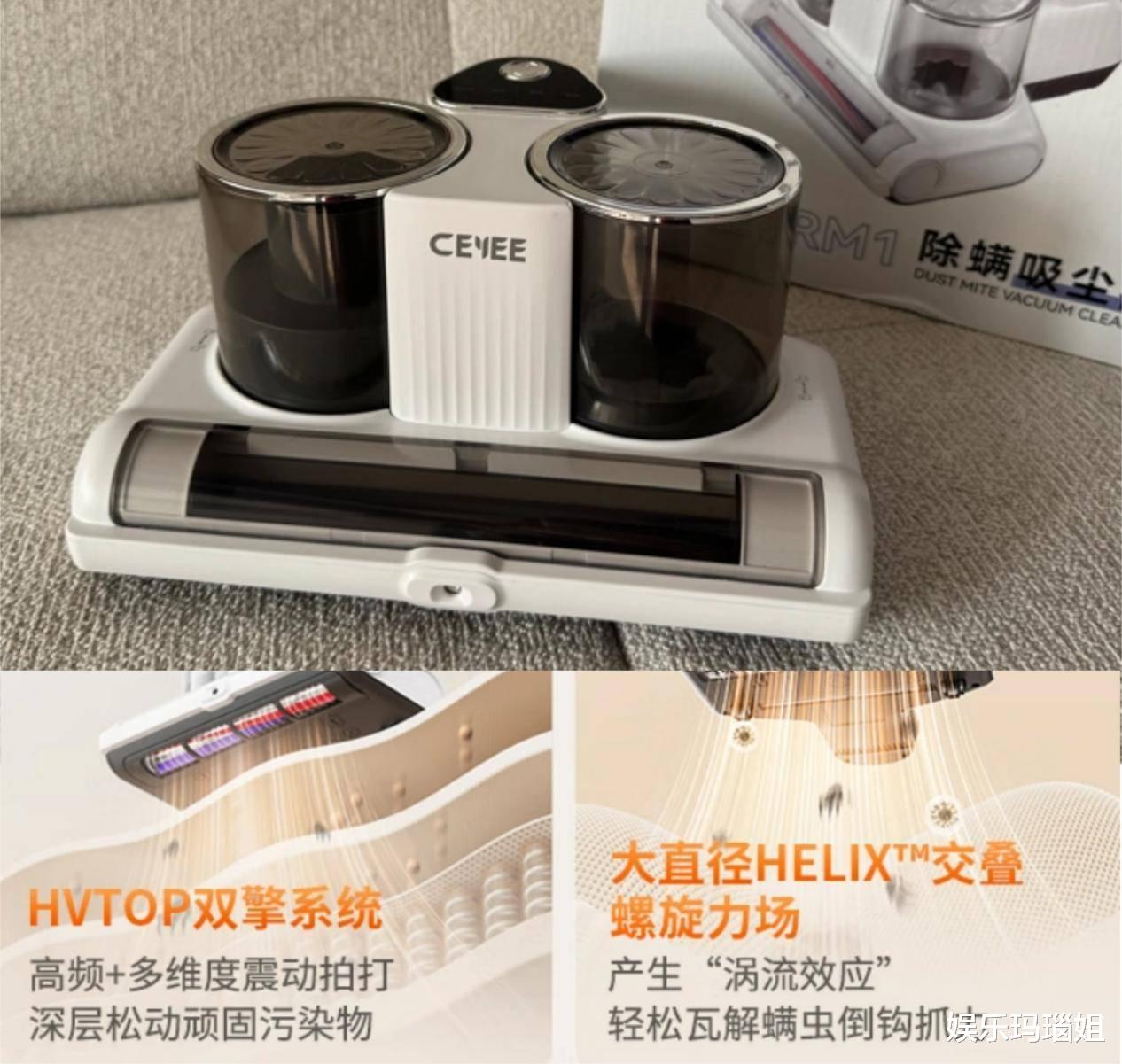 而希亦RM1除螨仪和普通除螨仪完全不一样,它搭载了HVTOP双擎系统,提供了15000pa强劲吸力,配合12000次/分钟高频拍打,通过拍打和吸力同时发力,清理床垫、沙发里的深层灰尘和螨虫效果明显提升。配上大直径交叠螺旋拍打头,螨虫和纤维之间“粘得死死的”的污垢,一下子就被震松吸出来。