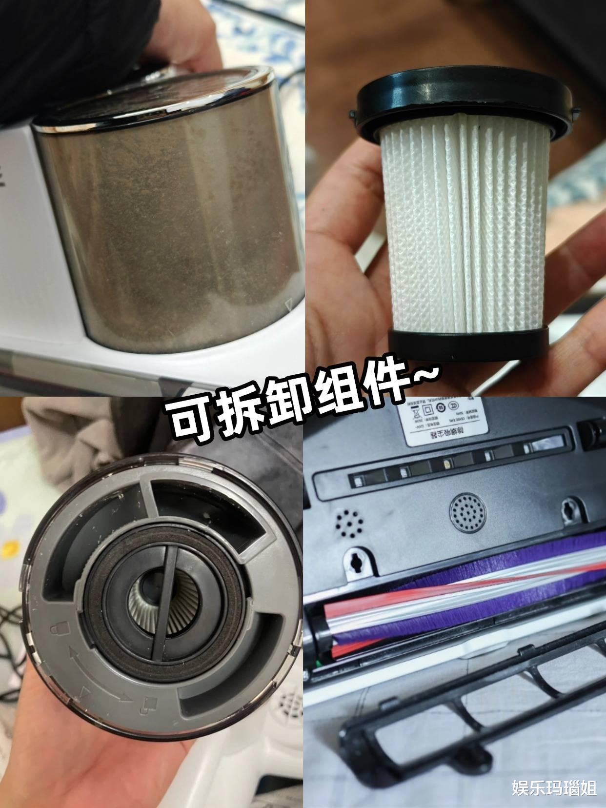 一边是多锥旋风高效分离灰尘,另一边用来存储尘螨,清理时不会堵风道,吸力一直保持很稳定,用起来特别放心。而且尘杯也很好清理,垃圾一倒就干净了,滚刷和尘杯这些都是支持水洗的,洗完晾干直接装上,过滤网也能反复循环使用,像有些微微洁癖的人,用来清洁完床垫之后,洗干净了再去清洁棉被或者沙发,也很可以的!