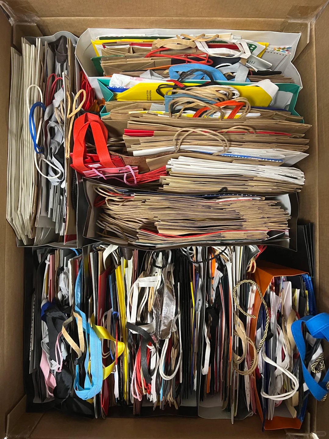 这袋子也可以改造成一个桌面收纳盒,用来收纳桌面的凌乱小物件,又好看又实用,将纸袋子压平之后剪开。