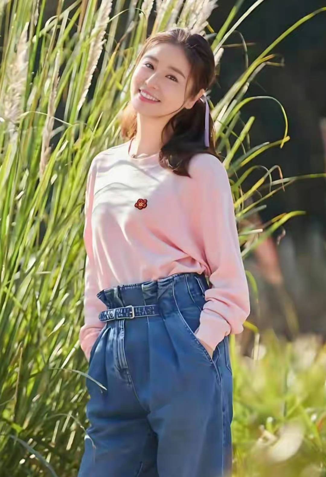 虽已至成熟年纪,林心如的穿搭毫无老气之感。粉色圆领卫衣减龄效果显著,淡粉色调温柔甜美,衬得气色红润,元气十足。