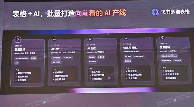飞书一直在推动“AI+多维表格”成为企业落地AI的重要入口。飞书市场经理王屹煊回忆,年初电商行业对AI的积极拥抱,让团队敏锐捕捉到机会,判断电商很有可能是该模式最易实现PMF的行业。