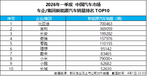 4 月 1 日,比亚迪发布 2026 年 3 月产销数据,单月总销量达300222 辆,强势突破 30 万辆大关,斩获中