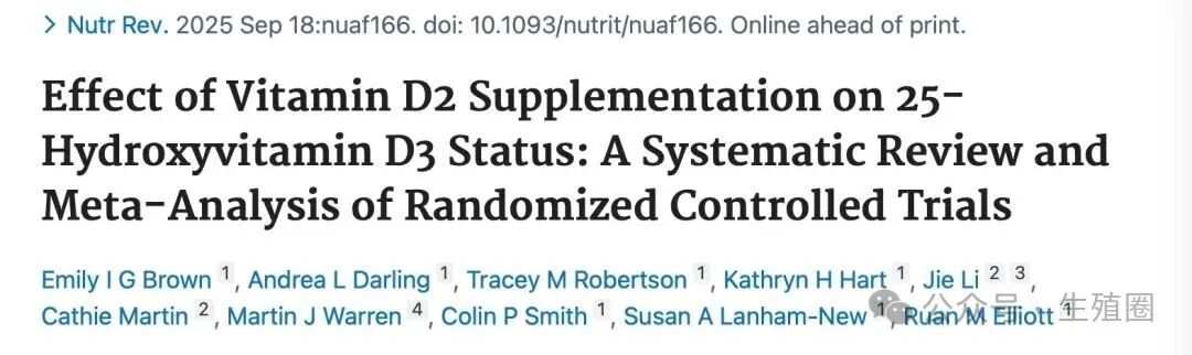 Effect of Vitamin D2 Supplementation on 25-Hydroxyvitamin D3 Status: A Systematic Review and Meta-Analysis of Randomized Controlled Trials. Nutr Rev. 2025 Sep 18:nuaf166. doi: 10.1093/nutrit/nuaf166. Epub ahead of print.