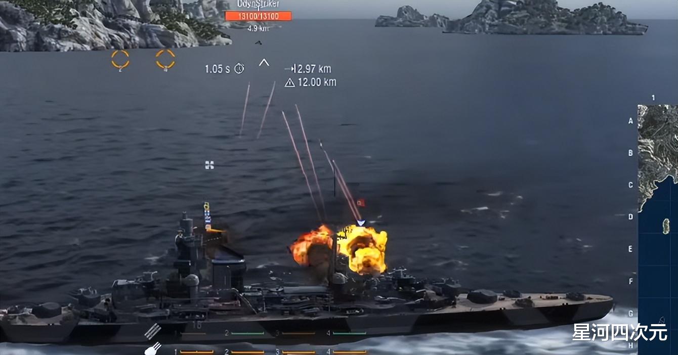 更关键的是,美因茨左右两侧各装又2组五联装鱼雷发射器,点出“重拳出击”技能后,轻松秒杀行动模式中的AI战列舰轻。玩家熟练后能用它的鱼雷单刷一条线,就算不熟悉行动模式,跟着大部队也能起到很好的辅助作用。
