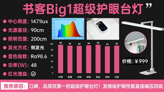 综合来看,如果更看重长期学习场景下的护眼效果,追求一步到位的专业级学习光环境,书客Big1在同类产品中属于配置和技术都最完整的选择。