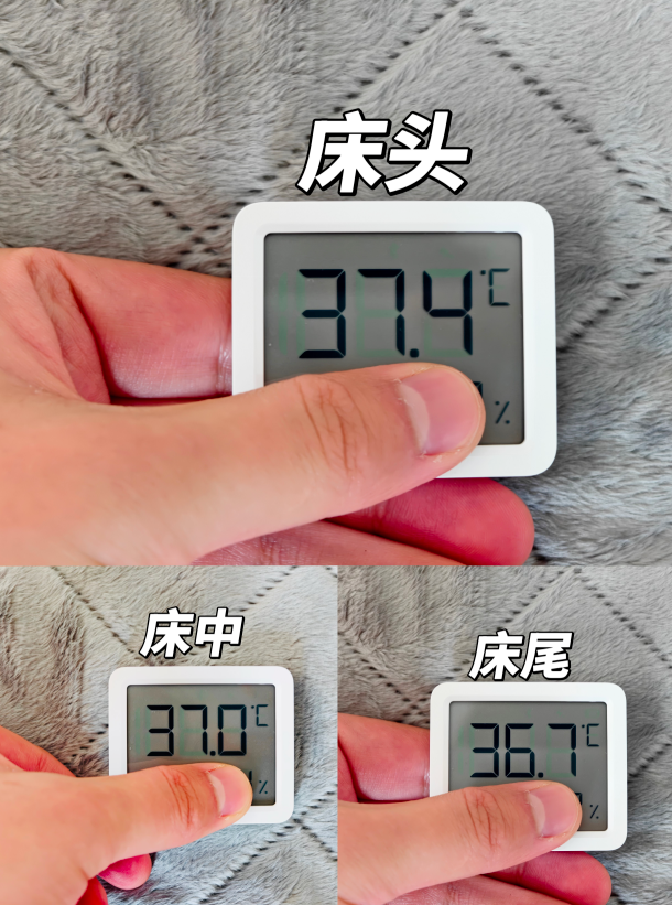 温控精准度则是另一个非常重要的因素。我们测量发现设置温度与实际温度的差距仅在1-2℃之间,波动范围很小。这种精确的温控性能确保了用户在使用过程中的舒适性,避免了因温度过高而造成的不适。通过检测毯面的温度均匀性,结果显示整个毯面的温差在2℃以内,甚至头部、腰部和脚部的温差也控制在1℃以内。这种均匀的温度分布使得整夜使用都非常舒适,没有出现局部过热或过冷的感觉,极大地提升了用户的使用体验。