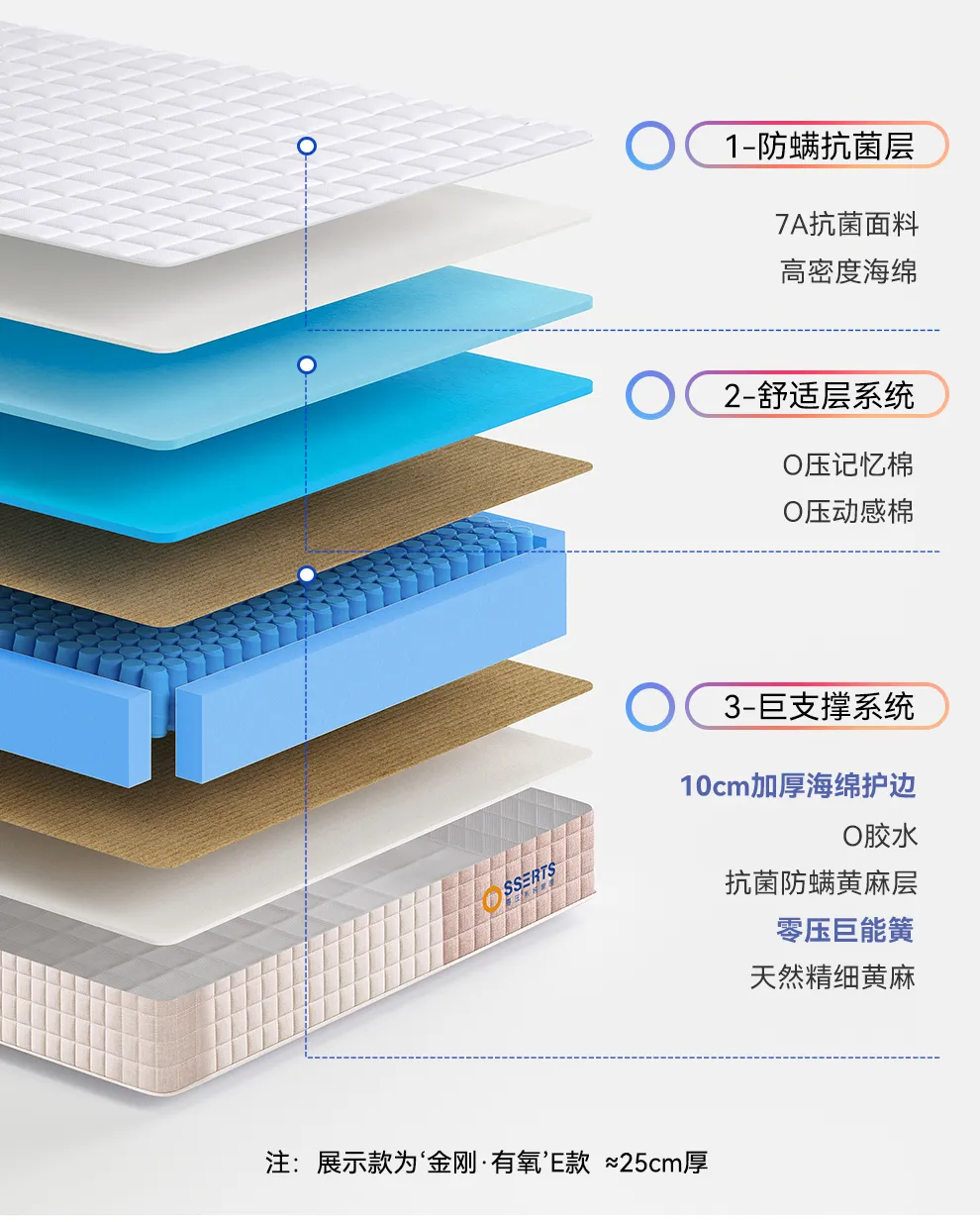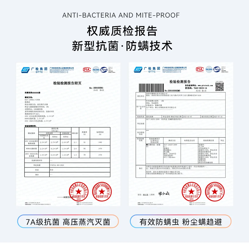 3.健康安全是底线:过敏体质、家里有孕妇/宝宝的,一定要选“零胶水热压工艺”的床垫,从源头杜绝甲醛;再选带“抗菌面料”的,减少螨虫和病菌。