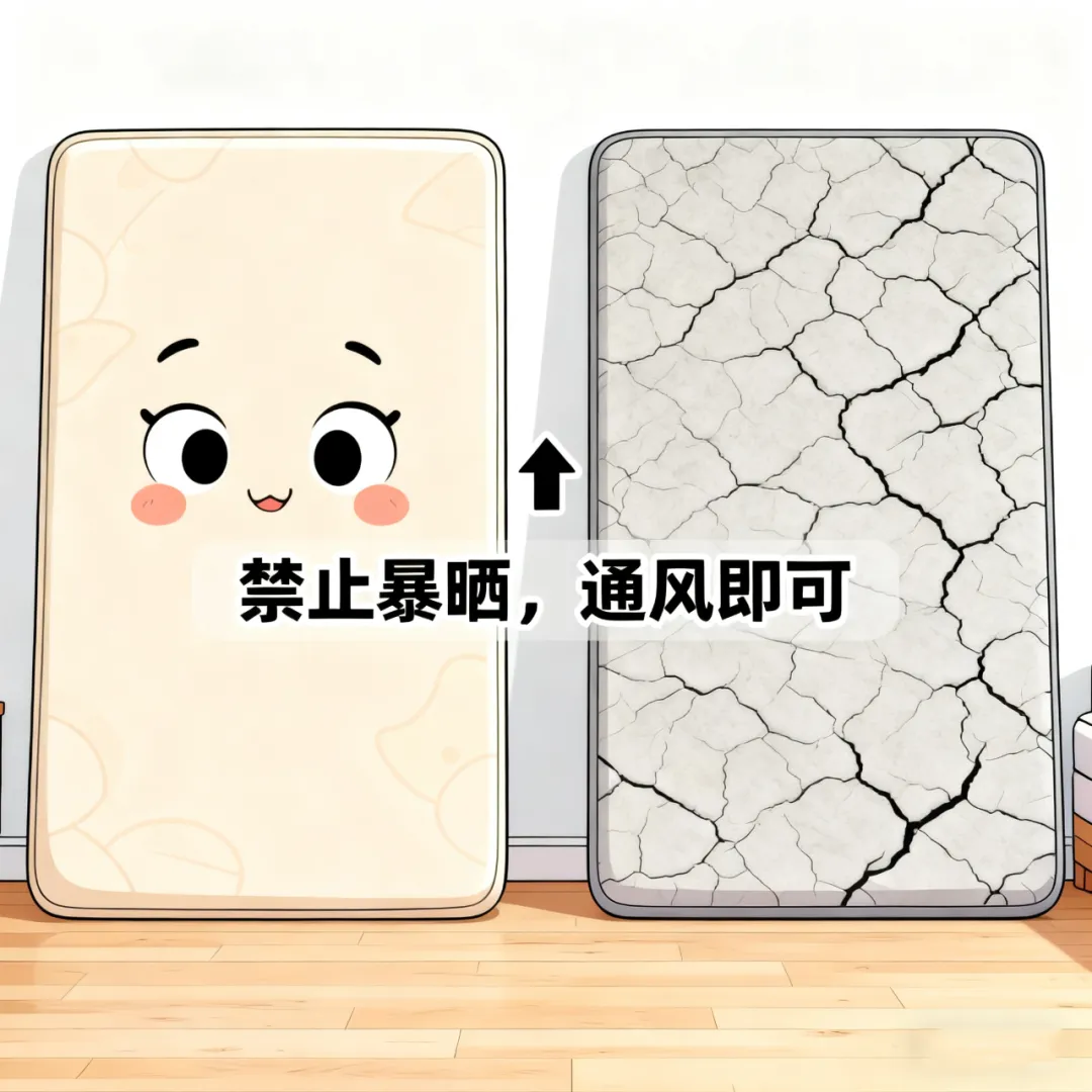 4.避免暴晒:拆床垫的塑料包装,保持房间通风;但别让床垫晒太久太阳,会让面料褪色、变硬,影响睡感。