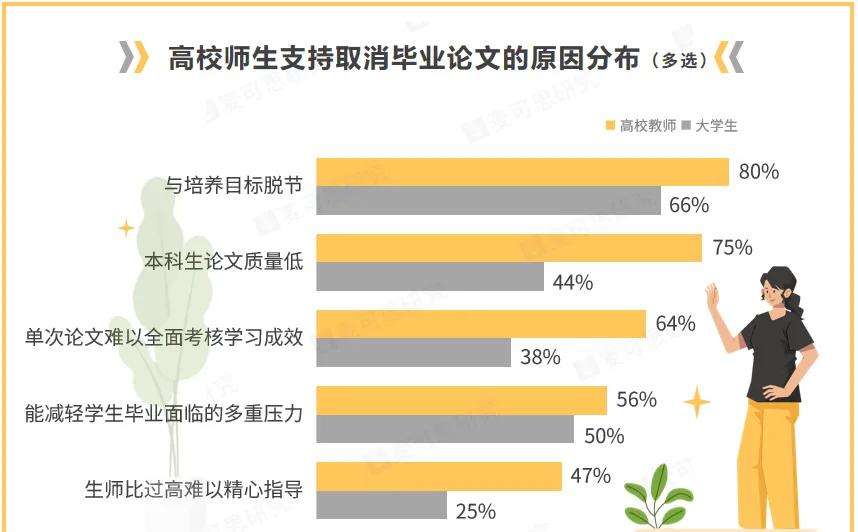 今年4月,,进一步用数据呈现了当前师生对本科毕业论文的看法。