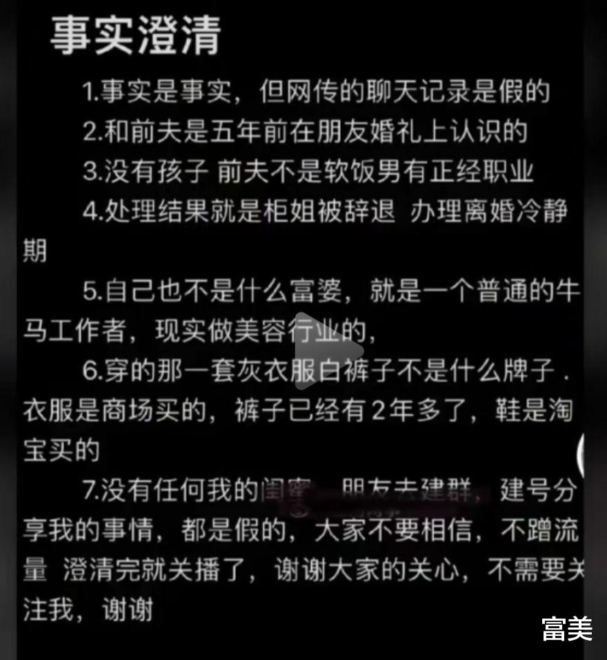 谈到当天在 LV 专柜的冲突,原配坦言自己只是想私下与柜姐沟通,并没有想把事情闹大。但柜姐的态度让她感到愤怒和受伤,一时情绪失控,才导致事态升级。她还否认了网上流传的各种聊天记录和照片,称这些所谓的“证据”都是虚假信息,不知道是谁在恶意传播。她呼吁网友不要轻信网上的谣言,也希望大家能够尊重当事人的隐私。