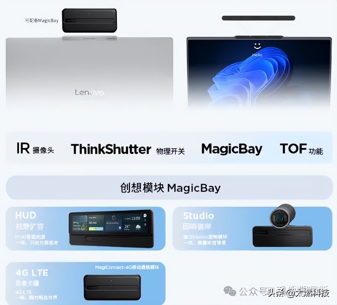 ThinkBook 14+/16+ 2026还支持MagicBay,之前只有ThinkBook 16p、ThinkBook X这些高端机型才支持MagicBay。通过这个功能可以外接各种模块,实现更丰富有趣的功能,包括4K高清摄像头模块,4G LTE上网模块等。