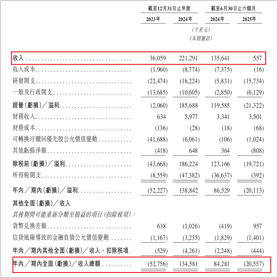 目前,阿斯利康不仅通过全资子公司和关联基金合计持股7.49%,更是公司在报告期内(2023年至2025年6月底)唯一的收入来源客户。招股书显示,报告期内诚益生物的营收分别为0.36亿美元、2.21亿美元和56万美元,对应的净利润分别为-0.52亿美元、1.39亿美元和-0.20亿美元,整体呈现大幅波动。