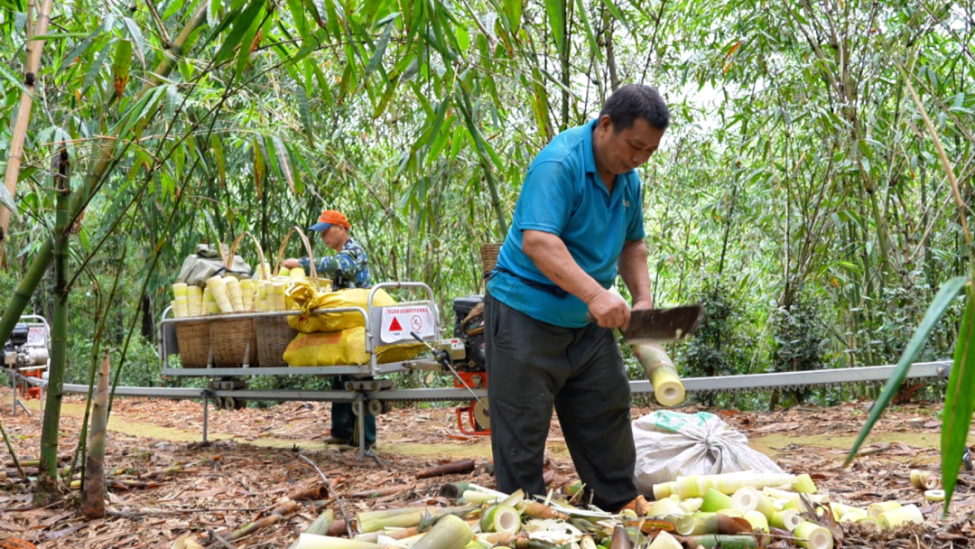 到了10月份左右,就会有收购商前来收购制作好的笋干。笋头因肉质厚实而成为出口“明星”,远销欧美、东南亚等国家和地区;笋尾、笋衣则以清爽口感占据国内餐桌。“鲜笋价格稳定在每斤2元以上,基本不受外界价格波动影响;笋衣价格这几年一直很好,保持在每斤45元以上;笋干价格也稳定在每斤25元以上。预计今年我们村的鲜笋产量约300万斤,笋干产量约30万斤,年产值大概300万元。”莫建新欣喜地说,以前靠人力背笋下山,现在有了运输车,省了不少人力成本。“以前一天采笋最多两三百斤,现在一个人就能采六七百斤,所以我们现在更有信心复耕更多笋山了。”
