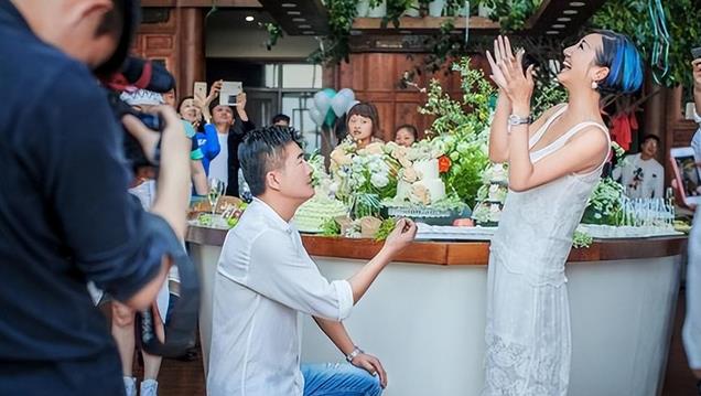 单膝下跪,真诚地奉上特意挑选的戒指,这让王玲感动得又哭又笑。