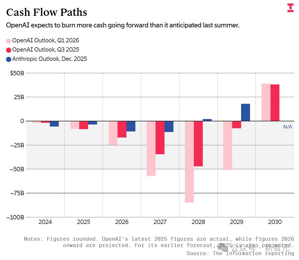 虽然OpenAI的年化收入有250亿美元,但有人2月份私下给投资人打过预防针,直到2030年,烧钱速度会是原先预期的两倍多。