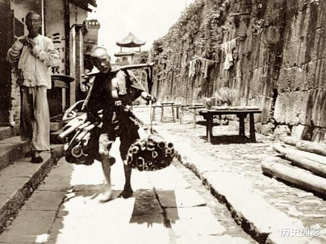 古城墙下的窄巷里,挑着货担的行人快步走过