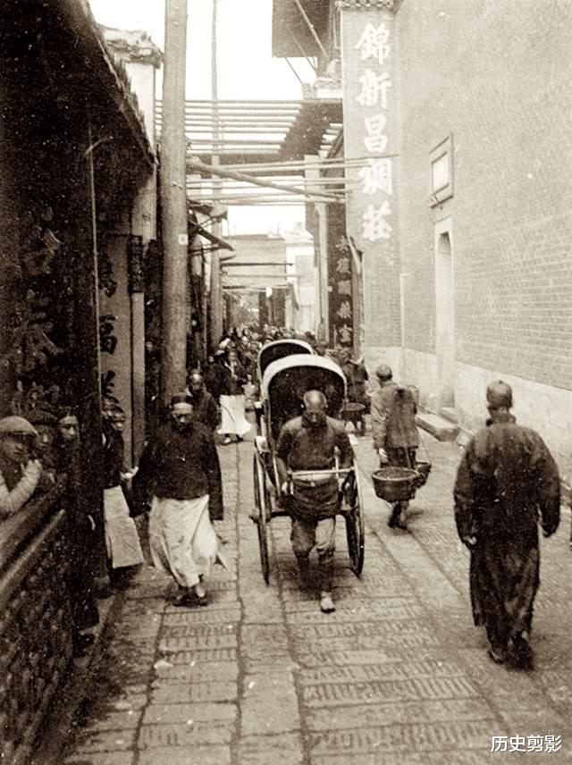 长沙老巷里,黄包车夫拉着车穿行在 “锦新昌绸莊” 的招牌下
