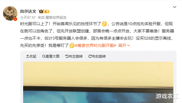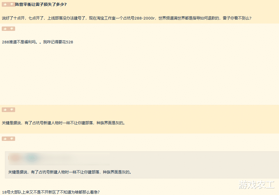 也有玩家发帖说大家可以互相帮忙创建联盟的账号,然后这样就能平衡部落与联盟的角色了。正常来说,每个玩家创建一个部落和联盟角色确实可以让大部分的玩家都能玩,但是会出现一些玩家可能不创建号但是去玩部落,导致了创建号的玩家不一定能玩。所以评论区也有人说“快去快去吧,我在这等着刷新建号,加油”。所以农工觉得大家只想玩部落,而不想付出,那么只能等有真实的联盟玩家来了才能玩了。