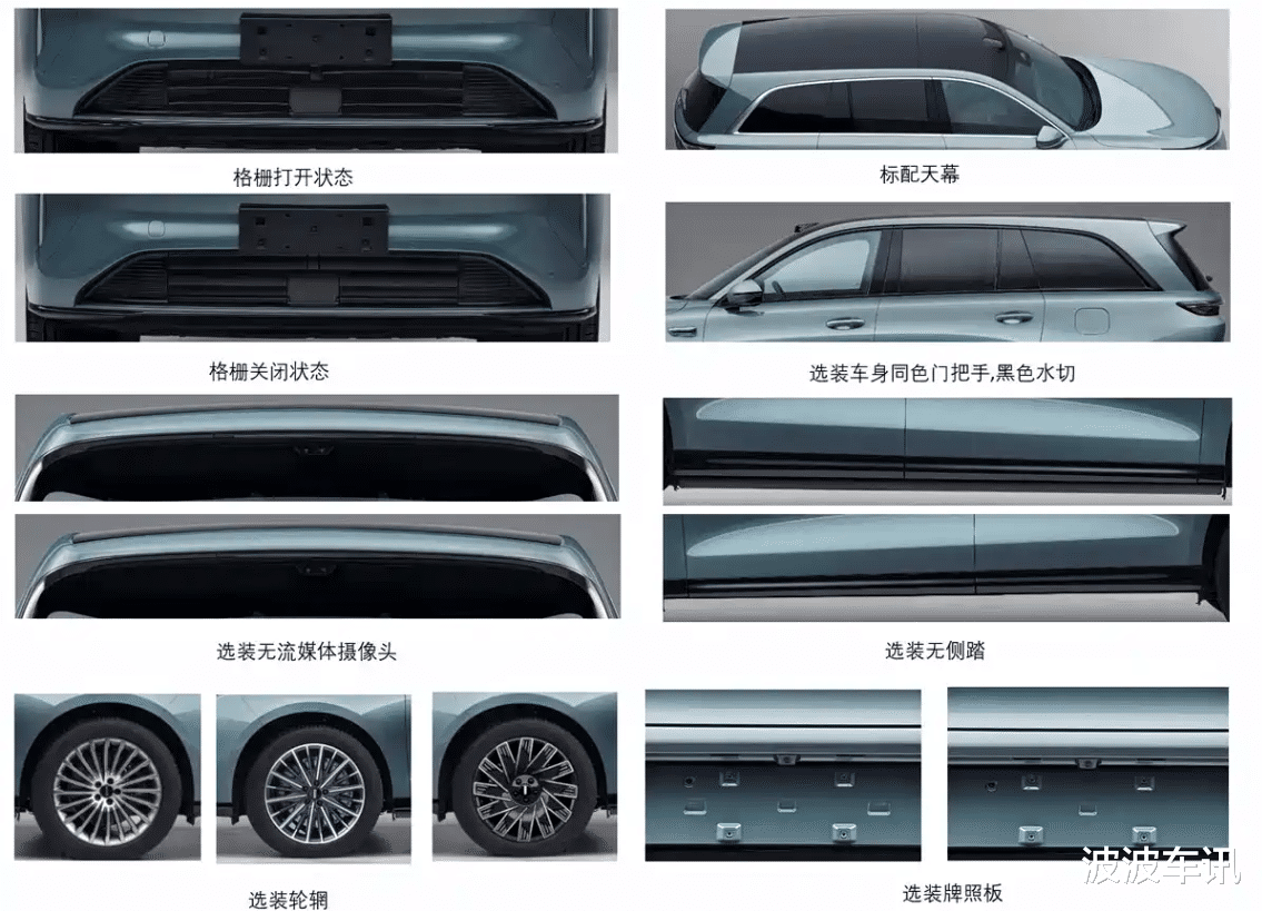 在什么的细节方面,我们可以看到新车标配全景天幕,它有可以闭合的格栅,还有不同风格的车轮毂可选择。魏牌V9X标轴版和V8X的长宽高分别为5205/2025/1825mm,轴距3050mm,整车块头是比较大的。在动力方面,魏牌V9X有1.5T和2.0T的插混动力可选择,两款发动机的最大输出功率分别为125kW和175kW,纯电续航有200km和312km两种规格,V8X采用1.5T发动机。