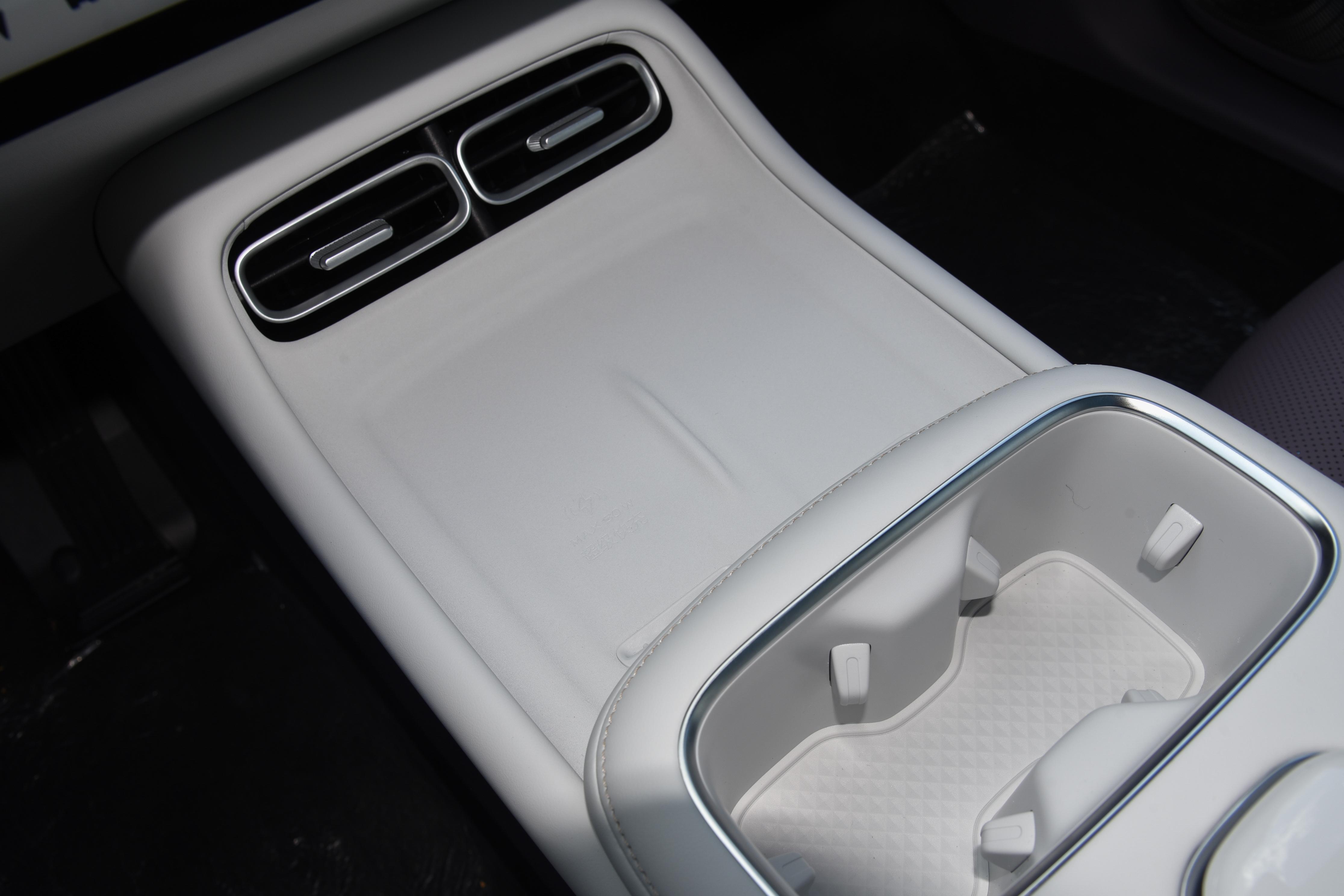 坐进车里,第一感觉就是挺清爽的,没什么花里胡哨的设计。整个仪表台都是横平竖直的,深色调搭配起来显得沉稳,但又不会觉得闷。手能碰到的地方,比如门板扶手、中控台上沿,都给包上了软材料,再配上些金属条和亮黑面板,手感和观感都处理得不错,至少在这个价位里,它没给你那种硬邦邦的塑料感。它把换挡机构挪到了方向盘后面,这么一来,传统挡杆那块地方就完全空出来了。底下掏空了一大块,平时我的单肩包就随手扔那儿,拿东西特顺手。手机往那一放就是 50W 的无线充电,旁边还有几个带磁吸的实体键,可以自定义一些常用功能,省得去屏幕里翻了。扶手箱也够深,放俩大号水杯,再塞点杂物进去,盖子都能轻松盖上。