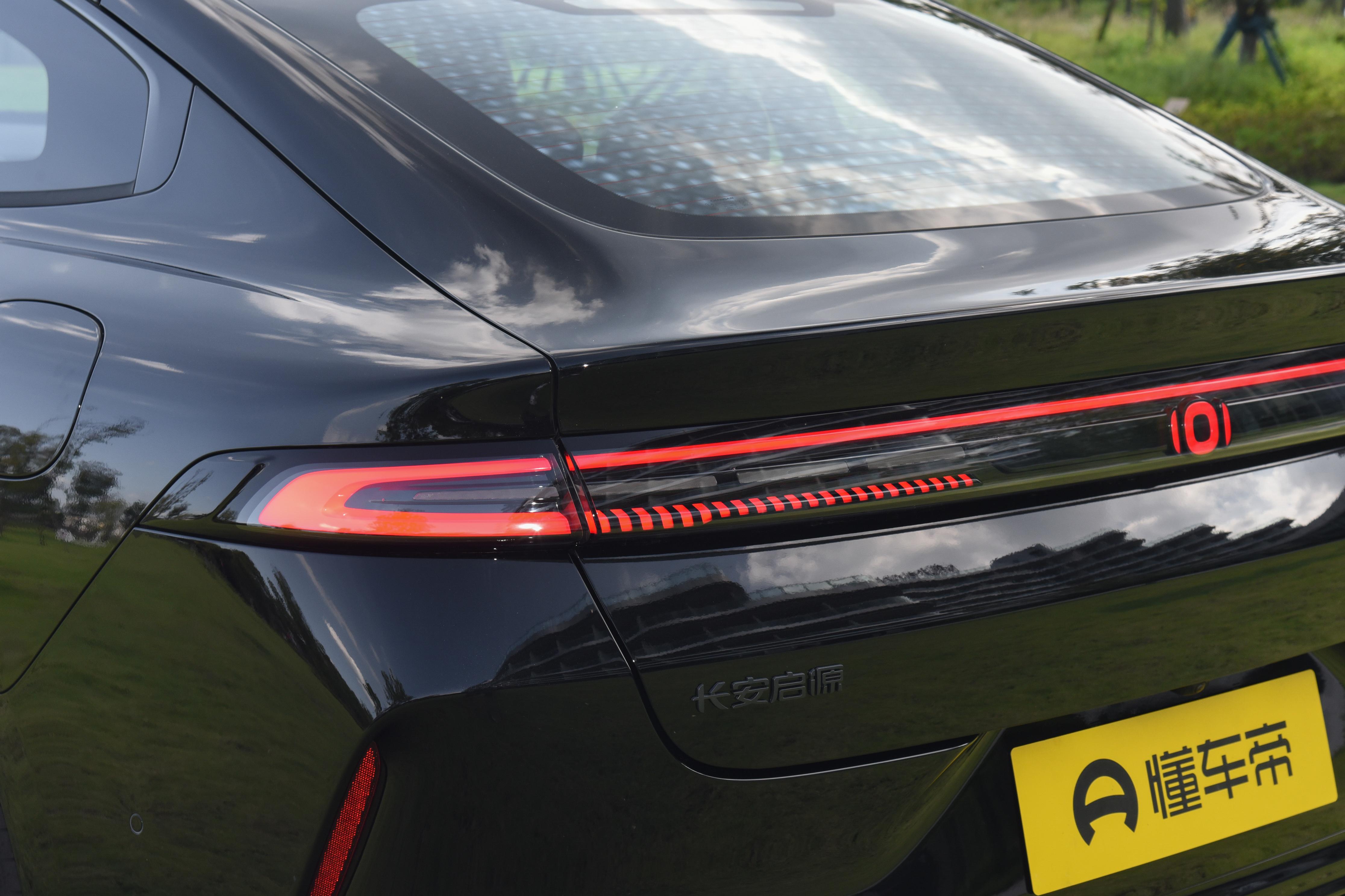 能感觉到启源A06这次在设计上是想彻底扭转印象的,毕竟请来了前大众的设计师操刀。整个车头的姿态压得很低,机盖上几条筋骨分明的线条很有力量感。它的大灯面积不大,但眼神挺凶的,配上能点亮的贯穿灯带和车标,晚上看过去确实营造出了那种宽体轿跑的错觉,有几分德系车的韵味在里面。侧面线条处理得相当老道,接近4米9(4885mm)的车长和超过2米9(2922mm)的轴距,基础就很好。设计师把前悬做短,后悬拉长,加上一个很流畅的溜背和悬浮式车顶,让整个视觉重心向后移,真有点后驱运动车型的范儿,开出去确实挺抓眼球的。车尾的设计没掉链子,和车头风格很统一。贯穿式尾灯点亮后,内部那种类似琴键的结构细节很加分。设计师还在小鸭尾下方用了一个很宽的肩线设计,把车尾的姿态压得更低,那种扎实的运动感就出来了,属于耐看又不过火的类型。