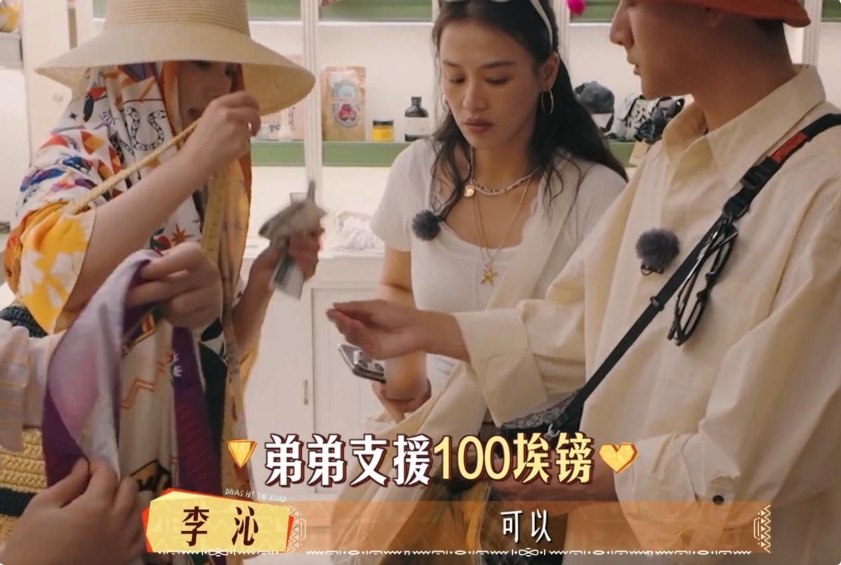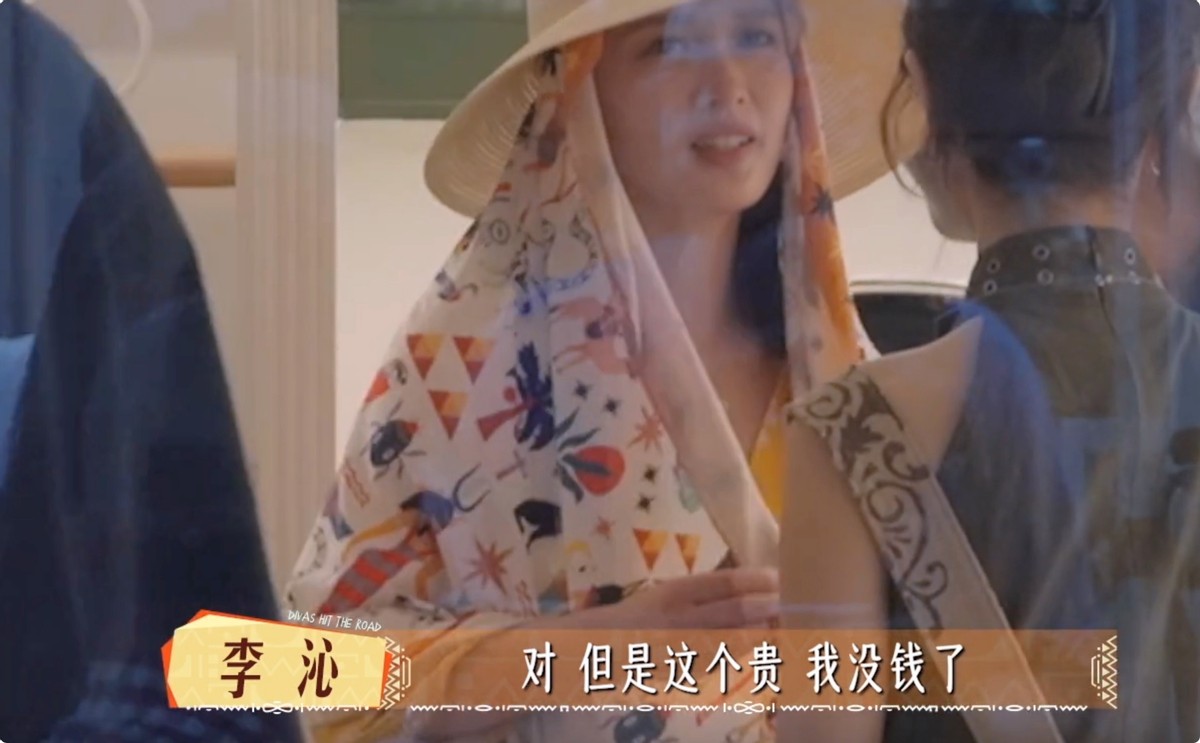 但节目中,李沁看上一条标价2100埃磅的丝巾,她自己的经费不足,导游又说这款丝巾在别处很难买到,所以李沁就陷入了纠结,又想要,又犹豫。